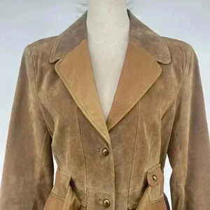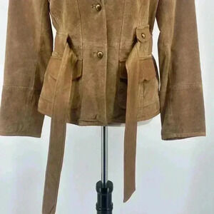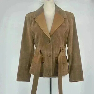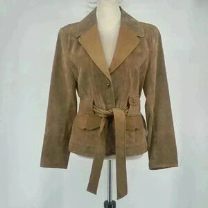 Bernardo Women’s Medium 100% Genuine Leather Jacket Belted Tan Lined Winter Cozy