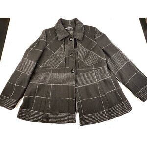 Bernardo Women's Wool Blend Coat Black White Plaid Size 2X 3-Button Collared