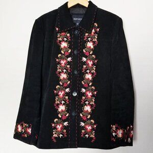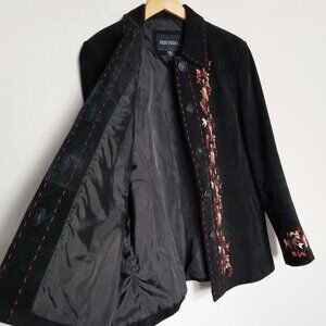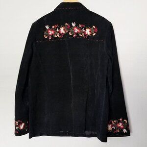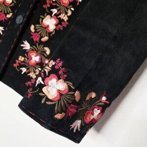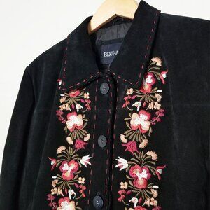 Bernardo Women's XL Suede Genuine Leather Floral Embroidered Jacket Coat Black