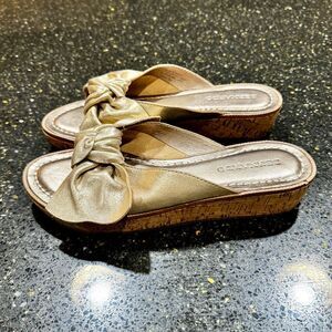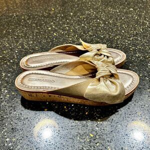 Bernardo by Anthropologie Petra Bow Slide Gold Metallic Sandals. Size 8.
