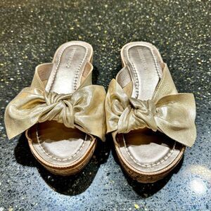 Brand new without box! Bernardo by Anthropologie Petra Bow Slide Gold Metallic Sandals. Size 8. Perfect condition. From smoke free pet free home.