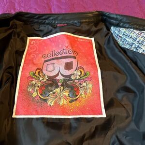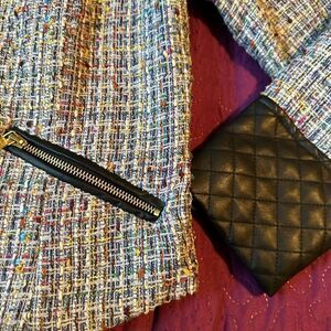 Bernardo collection tweed jacket with snaps and faux leather accents med