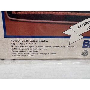 Bernat Needlepoint Basketweave Pillow Kit Black Secret Garden 14" x 14" TO7031