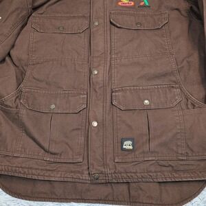 Berne Jacket Mens L Brown Hood Canvas Barn Chore Coat Work Pockets Farmer Seed