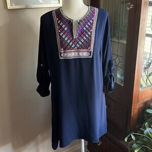 Gorgeous navy blue hi-low tunic dress or kurta by Berne in excellent condition;