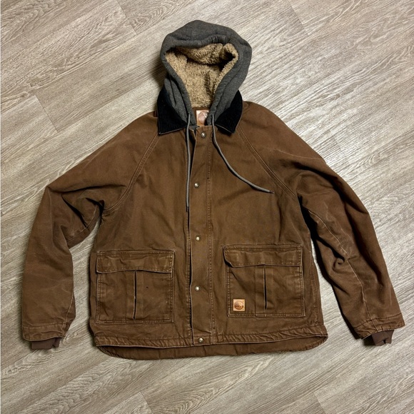 Men's Large Berne work coat. Fleece lined with built in hoodie. Some wear, please see pictures before buying.