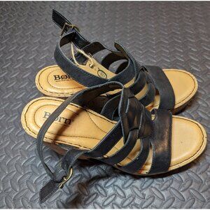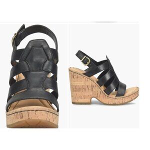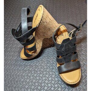 Bernese Cage Wedge Sandal BLACK LEATHER $90 NWT