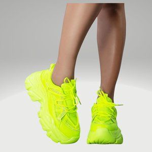 Introducing the Bernese Neon Yellow Shoe - a vibrant and stylish footwear option that combines a comfortable fit with a bold neon pink color. Step out in confidence and make a statement with these eye-catching shoes. The neon pink color adds a pop of brightness to any outfit, whether you're dressing up for a night out or running errands during the day. Designed with comfort in mind, these shoes feature a cushioned insole and a durable outsole for all-day wear. The stylish design completes the package, making these shoes a must-have for fashion-forward individuals. Upgrade your shoe collection with the Bernese Neon Yellow Shoe and experience the perfect blend of style and comfort.