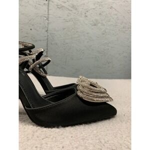 Berness Rhinestone Strappy Heels Women's 7 Black Pointed Toe Platform Pumps