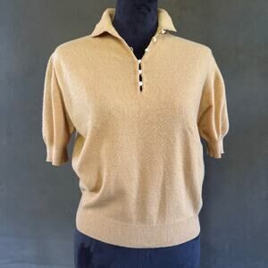 Bernhard Altmann 100% Cashmere Top S/M Beige Polo Style · AS IS repairable