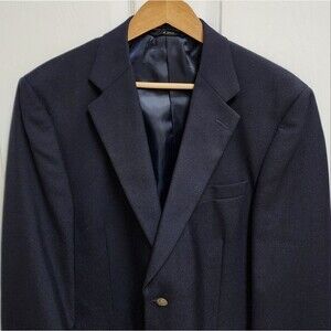 Bernhard Altmann Blazer Mens 42 Long Navy Blue Wool Blend 2 Button Notch Vent Lined Classic Preppy Business Academia Event Minimalist Staple Capsule Wedding Party
