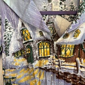 Enchanting midi dress with a winter village scene. Features snowy trees and glowing windows. Perfect for seasonal outings.