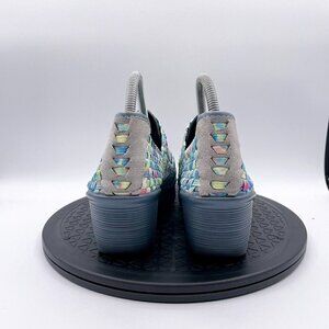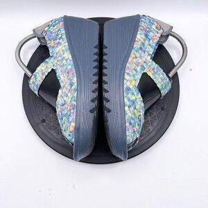 Bernie Mev 41 Blue Multi Woven Wedge Heel HALLE Mary Jane Shoe EUC! Slip On 10