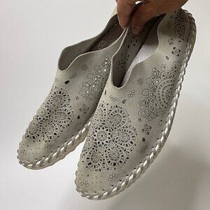 🤍 Bernie Mev Gray Suede Leather Slip-On Comfort Flats Shoes EU 39 (US 8-8.5)