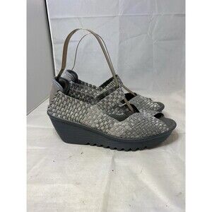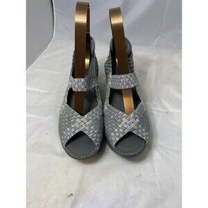 Bernie Mev Halle Women's 39 Silver Woven Stretch Open Toe Wedge Sandals