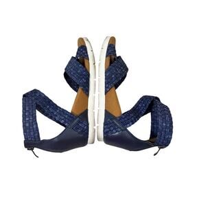 Bernie Mev New York Navy Woven Ankle Strap Wedge Sandals Shoes Women’s 39 US 8