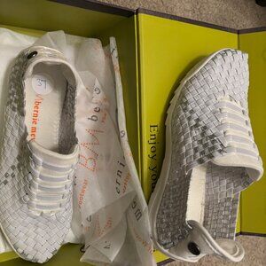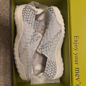 Bernie Mev “Rigged Vivaldi” White Silver Woven Slip-On Sneakers Sz 6.5-US 37 E U