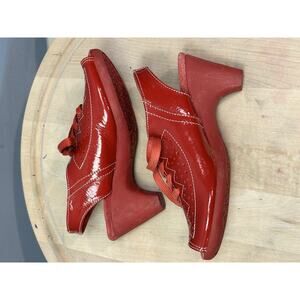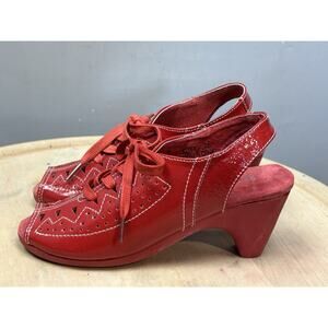 Bernie Mev Slingback Sandal Women 6.5US EUR 37 Red Lace Up Patent Leather Heel