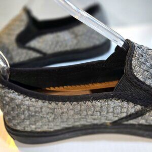 Bernie Mev Verona Women's Woven Pewter Metallic Slip-On Sneakers Size 9.5 EU41