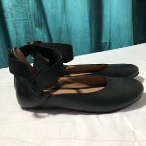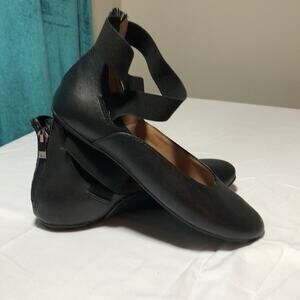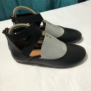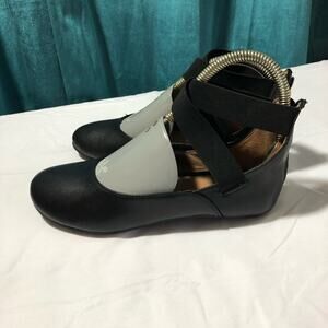 Bernie Mev womens 39 (us8) black leather strappy ballerina flats shoes zippers