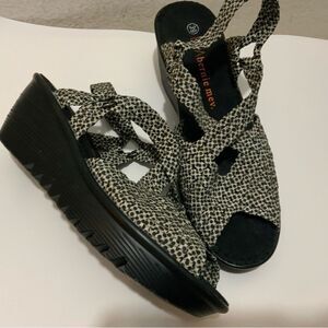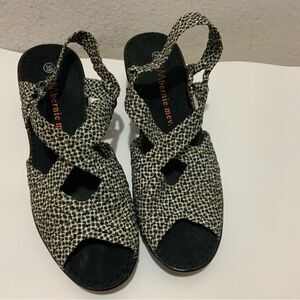 Bernie Mev Wedges Gold Woven Peep Toe Slip On Wedges Size 9