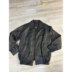 Bernini ostrich leather bomber jacket men’s large black exotic skin luxury coat South Africa genuine leather outerwear rare vintage designer premium safari aviator high-end
