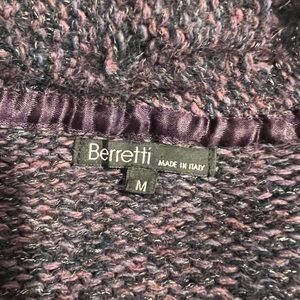 Berretti Cable Knit Cardigan Sweater Italy Purple Medium M Cotton Wool Alpaca