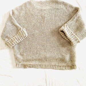 Lagenlook, designer, Italian, loose, soft, knit, dolman sleeve, metallic, gold, weekend, evening, lounge