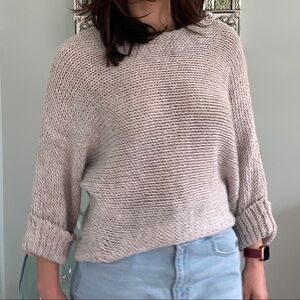 Berretti high-low sweater. Oatmeal color with metallic thread. One size fits all. Perfect condition. Bin U