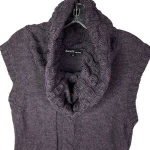 Berretti Wool Blend Cable Knit Purple Sweater Tunic Cowl Neck Sleeveless