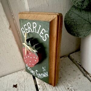 Berries 5¢ Strawberry Farm Rustic Sign Wood Wall Plaque Handpainted Wall Art 3x5