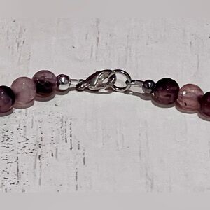 NEW - Enhance your style with this faceted berry agate handmade beaded anklet. The color has a subtle raspberry plum glow with silver half barrel accents that add a touch of style and hint of sparkle. A perfect accessory for any outfit.
