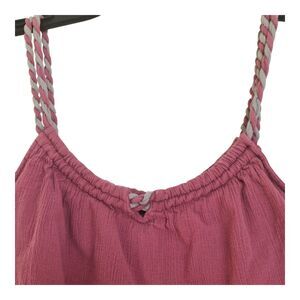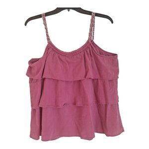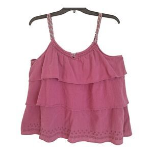Berry Pink Tank Top Ruffle Blouse Layers Rope Strap Boho Embroidered XL Route 66
