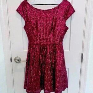 Berry Wine Red Prom HOCO Sequin Sparkly Short Dress Size 13/14 Deep V Backless