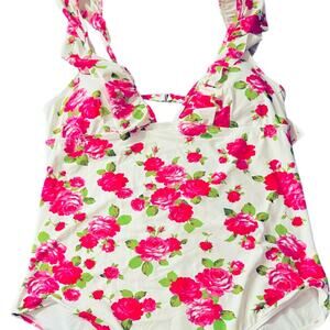 Bersey Johnson One Piece Ruffle Floral Swimsuit Padded Love Always Size XL NWT