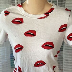 Bershka BSKGIRL Lips T-Shirt Top Women’s XS Crew Neck