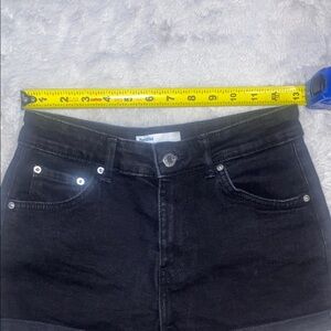 Bershka Black High-Waisted Jean Shorts Cuffed Hem
