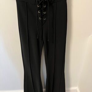 Chic black trousers with lace-up detail. Ideal for versatile styling.