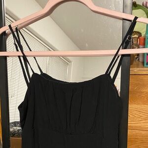 Chic black mini dress with delicate spaghetti straps. Perfect for stylish outings.