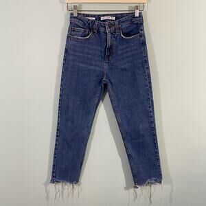 Bershka Denim Women's Straight Cropped High Rise Raw Hem Jeans Size 2