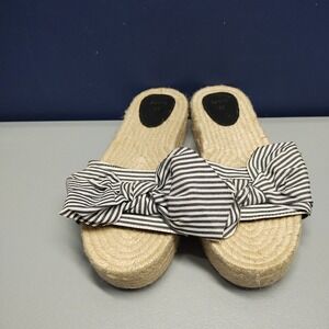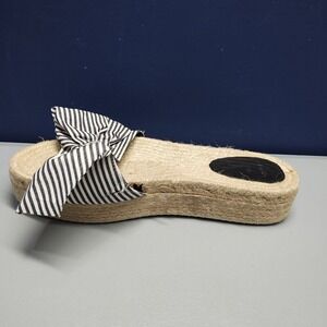 Bershka Flat Sandals Womens Size 8 Black White Tan Striped Slip On 5799/331/202.