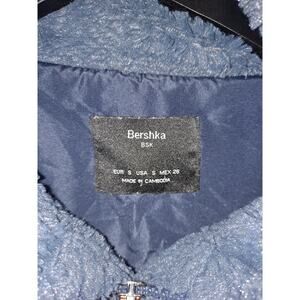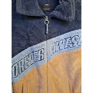 Bershka Forever Awesome Tan Blue Full Zip Sherpa Jacket Size Small