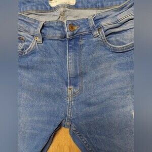 Bershka Denim Jeans Super Skinny Womens 31 Distressed Medium Blue. Waist measures approximately 31" inseam 26.5" and rise 10"