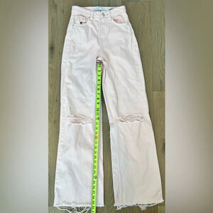 Bershka Light Pink Ripped Wide Leg Jeans 2