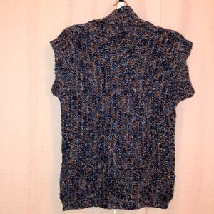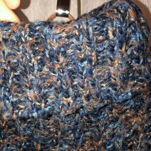 Bershka M Chunky Knit Cowl Neck Blue Rust Gold Metallic Sweater Vest