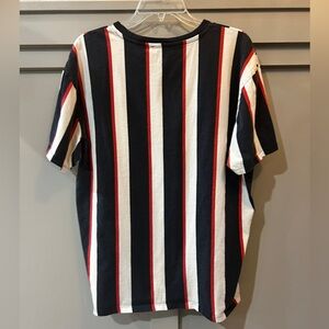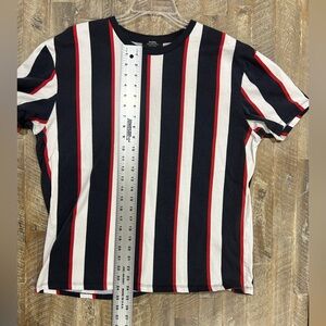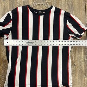 Bershka Men’s Vertical Strips Red White Navy Relaxed Short Sleeve Tee XL