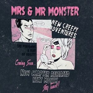 Bershka Mrs and Mr Monster Comic Graphic Cropped Crew Neck Tee, Women’s Size Small.
