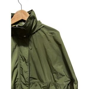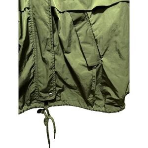 Bershka NA-KD women's green utility jacket hooded, leightweight asnd water rersistent with drawstring and zip and button closure sz M. New generation text . secret pocket and NWOT