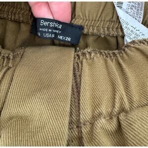 Bershka gold/brown cotton paperbag waist pants