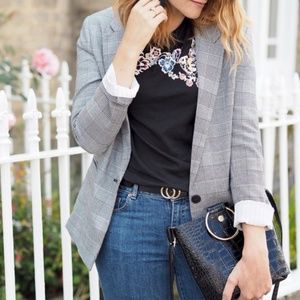 Bershka black grey and white check/plaid blazer in size xs! Single button.
